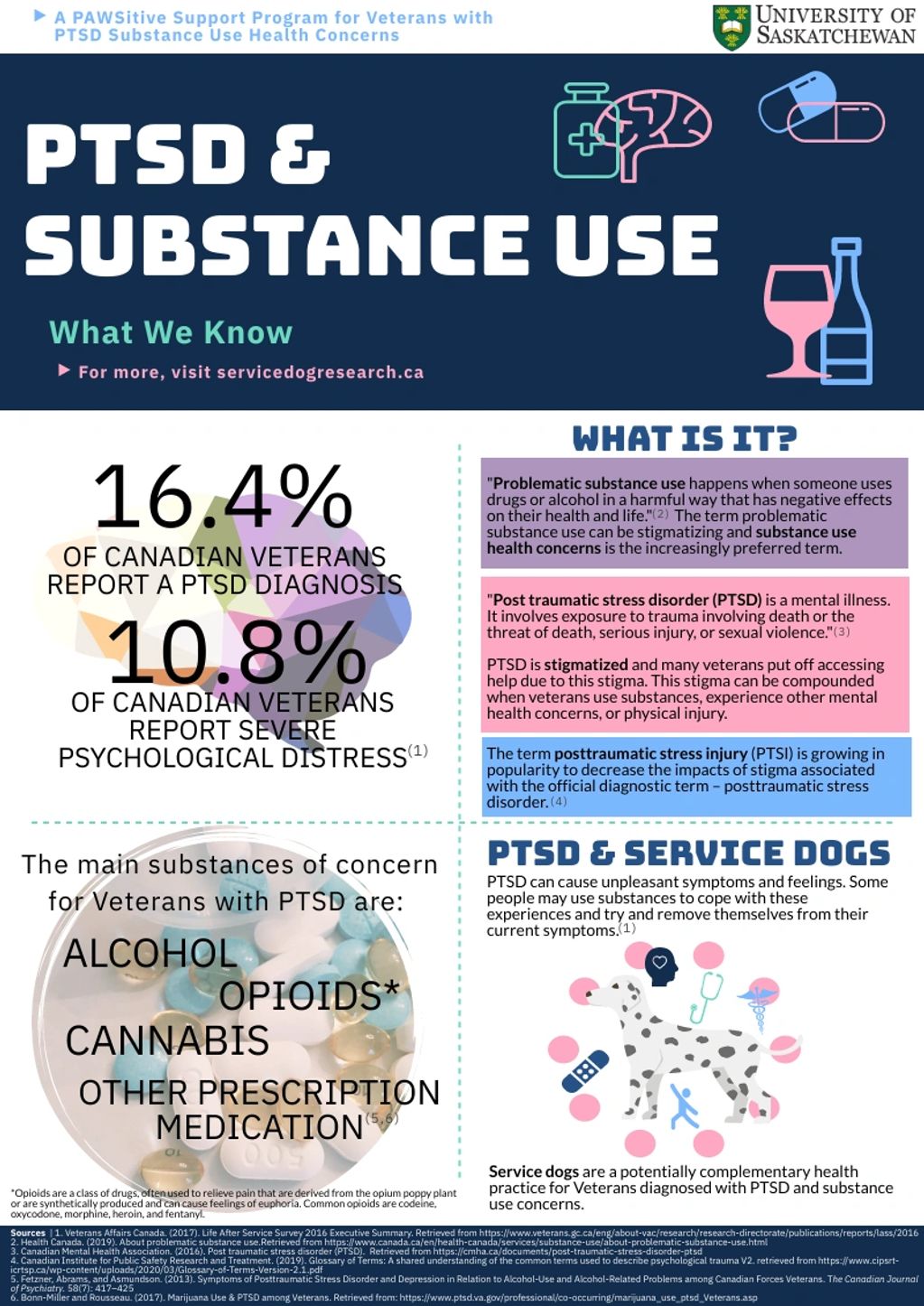 Cette infographie présente les grandes lignes sur le lien entre le TSPT et la toxicomanie.